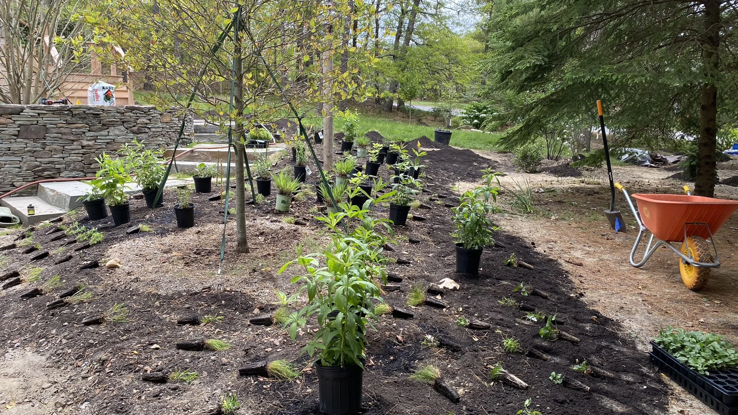 We designed and installed native entry gardens, an ecological privacy screen, and continue to perform ongoing maintenance for wonderful clients in East Orleans.